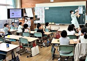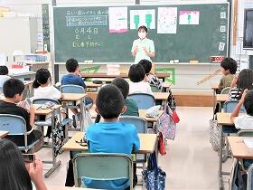 すぐ近くのこども園の先生方がボランティアでしてくださいます。今回は、1年生と2年生でした。