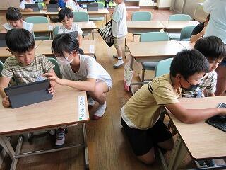 1年生もタブレットPC(1人1台端末)を使った学習をがんばっています。
