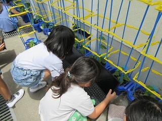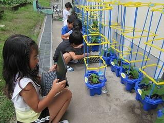 キュビナ(AIドリル)でドリル学習を行ったり、学校探検や朝顔の様子を写真に撮ったりと、いろいろなことにチャレンジしています。子どもたちは、瞬く間に使えるようになります。