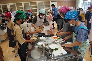 手際よく、決められ時間内に完成させました。包丁の使い方も上手でした。何よりも、みんなで協力して、楽しく活動できていてすばらしいと思いました。