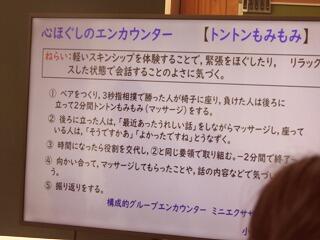まずは、4校合同の研修会ということで、「心ほぐし」からスタートしました。あっという間に参加者が笑顔になりました。