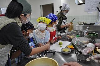 1月30日(金)、西岳地区公民館にて「親子料理教室」を開催しました。 今回は、西岳地区生活改善推進員から3名の講師をお招きし、保護者の皆様と一緒に調理と会食を楽しみました。