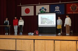 発表の内容は、昭和20年8月6日に起きた「都城大空襲」や、西岳地区にある「忠霊塔」について調査した内容、そして、そこから考えた「平和への願い」を子どもたちが思いを込めてまとめたものです。