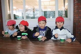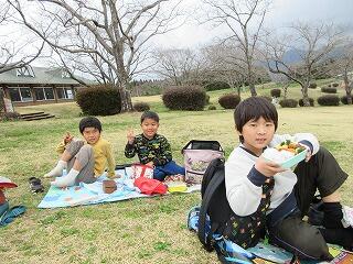 あいにく午後からは雨の予報でしたが、高千穂牧場での活動中はなんとか天気がもちこたえてくれました。広々とした牧場でお互いの絆を深め、全校児童で最高のお別れ遠足にすることができました。そして、何よりのお楽しみは、仲間と一緒に食べるソフトクリーム。その味は、格別だったようです。
