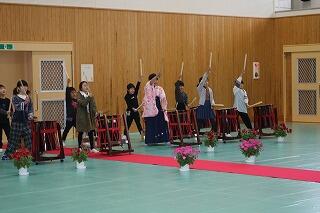 式の最後には、卒業生として披露する最後の「西岳太鼓」を演奏。一打一打に込められた6年間の思いが、体育館いっぱいに響き渡りました。