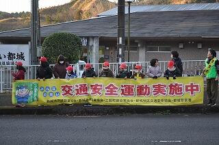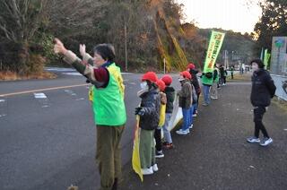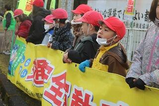 子どもたちは、県道を通る地域の方に向けて、いつも以上に元気な声であいさつを交わしていました。この活動を通して、子どもたちの元気な声が、交通安全への意識を高め、地域全体を明るくするきっかけになればと願っています。