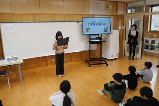 12月24日(水)、2学期の終業式を行いました。 行事の多かった今学期。式では5年生の代表児童が、2学期に挑戦したことや成長したことを堂々と発表しました。その姿からは、全校児童それぞれが充実した日々を過ごせたことが伝わってきました。