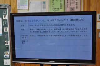 12月19日(金) 西岳小学校、吉之元小学校、夏尾小学校の3校をオンラインで結び、5年生が国語の合同学習を行いました。 今回のテーマは「宿題はあったほうがよいか、ないほうがよいか」。子どもたちは自分の考えを支える根拠をもとに、意見を述べ合いました。
