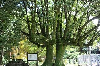 現在、この2本のオガタマノキは、かなり幹の太い大木になり、枝は横に張り、堂々とした姿になっている。私が小学校に入学した時にはすでにあったが、今よりぐっと細く、幹の直径は10cmぐらいだっただろうか。それは今から70数年前の昭和22年のことである。」