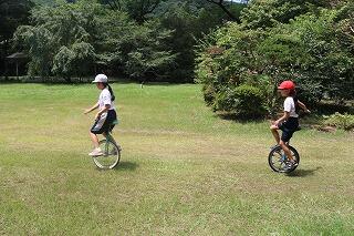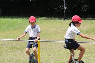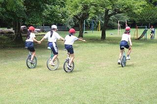 高学年の子どもたちは、一輪車で校庭をぐるぐると乗りこなすなど、その腕前には目を見張るものがあります。一方、一輪車が初めての低学年の子どもたちは、先生のサポートを受けながら一生懸命練習に励んでいます。きっとあっという間に上達し、校庭を颯爽と走り回る日も近いことでしょう。子どもたちの成長の速さにはいつも驚かされます。がんばれ、西岳っ子!