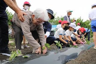 心地よい天気と気温に恵まれたこの日、子どもたちの心も高齢者の方々との触れ合いを通して、さらに豊かに育まれたことと思います。今日植えたサツマイモの収穫は10月の予定です。秋の収穫の日が今からとても楽しみですね!