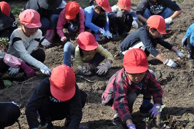 10月27日(月)、地域の高齢者施設「長遊園」で芋ほり体験を行いました。秋晴れの中、大きな芋を掘り出すたびに子供たちは大喜びでした。また、車いすを押したり会話を楽しんだりと、高齢者とのふれあいを通して、心温まる時間を過ごしました。