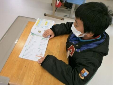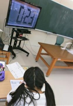 「漢字ドリル」を正しく・速く読む練習をしていました。