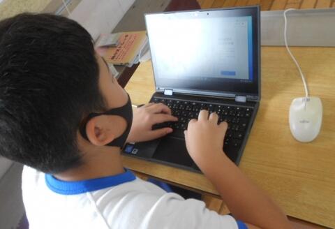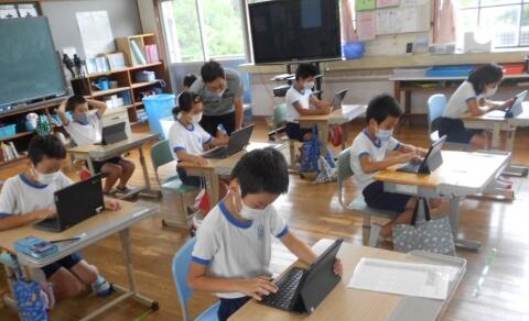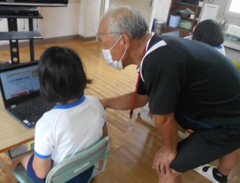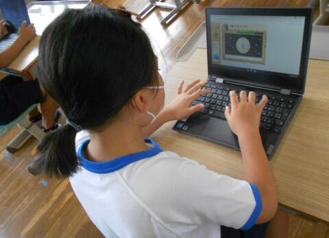 5・6年生が西岳中の校長先生にタイピングを教えていただきました。