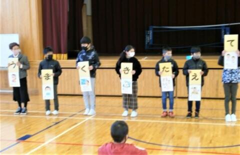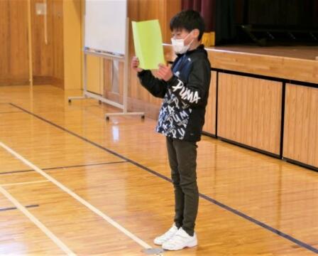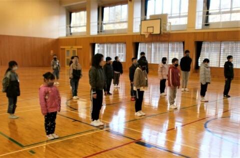 体育館の換気と子ども達の間隔に気を付けて、3学期の始業式を行いました。