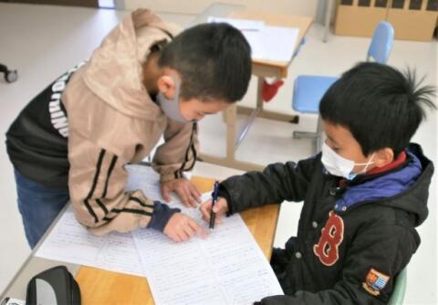 3・4年生が答え合わせをしながら。疑問点について話し合っていました。