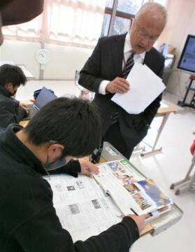 図書館にある新聞コーナーです。「子ども新聞」も置いてあり、