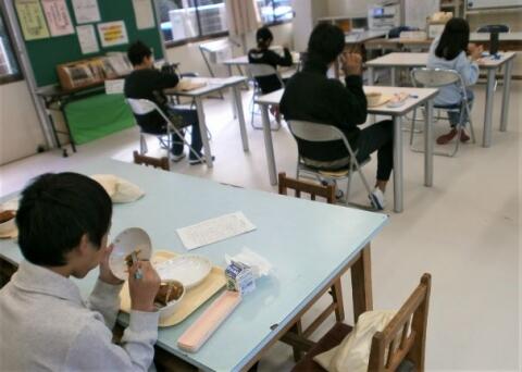 5・6年生、みんな前の方を見ながら「黙食」をしています。
