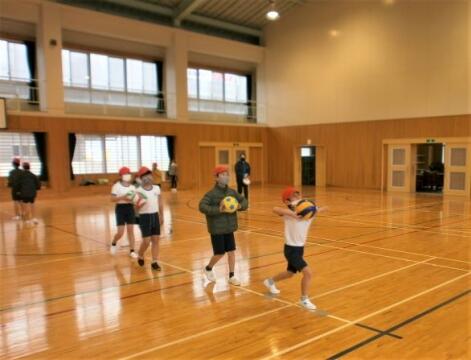 一人が一つボールを持ち、間隔をとって、身体を動かします。