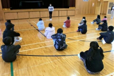 体育館の換気と子ども達の間隔に気を付けて、3学期の始業式を行いました。