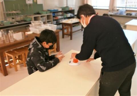 5年生が塩を水に溶かし、重さを調べる実験をしていました。