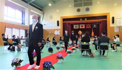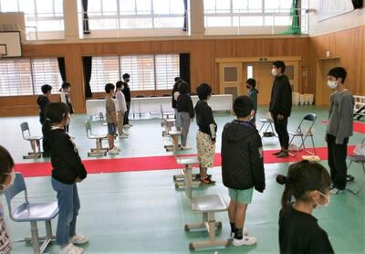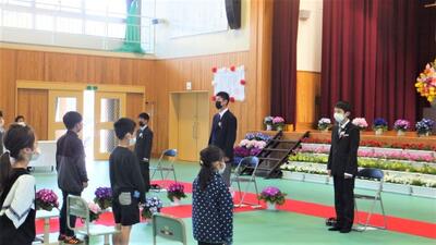 西岳小学校を去られる3人の先生方との離任式を行いました。
