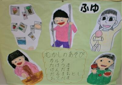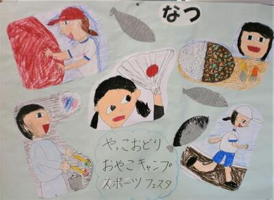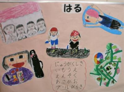 1・2年生の教室に、西岳小学校の1年間が季節ごとにまとめてありました。