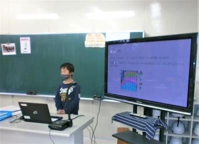 34年生が、総合的な学習の時間のまとめを発表していました。