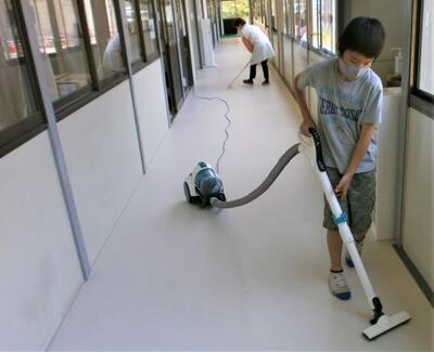 お昼休み、4年生と6年生が自主的にクリーン活動を行っていました。