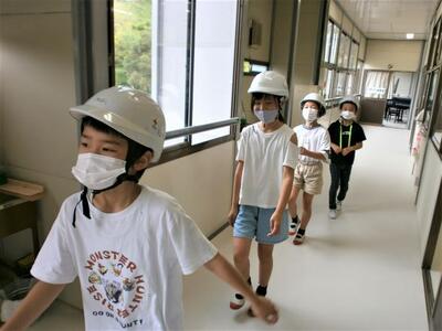 噴火・地震に対する避難訓練を行いました。子ども達は、ヘルメットを