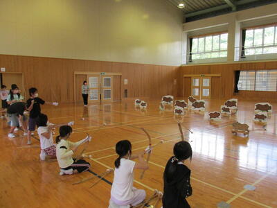 手作りの弓矢をお借りして〝狩り〟の体験もさせていただきました。