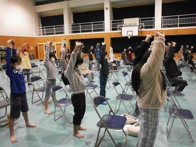 映画の上映の前に、会場の皆様と一緒に「西岳元気もりもり体操」にも取り組みました。