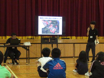 都城土木事務所の方が来られて、「土砂災害防止教室」が行われました。