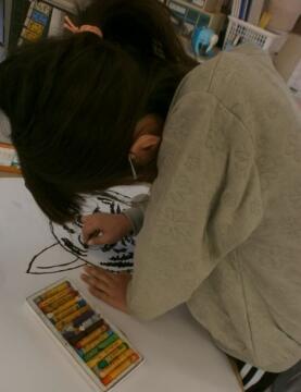 1・2年生が「〇〇にトライ!」という言葉と一緒にトラの絵を描いていました。