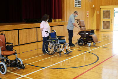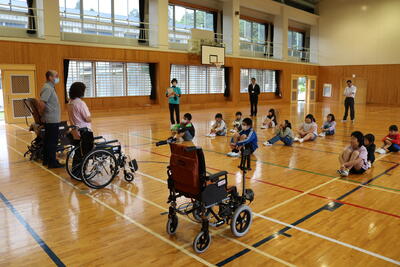 今日は、3種類ある車椅子の仕組みや操作方法を教えていただきました。その後、実際に押したり乗ったりしてみて体験活動を行いました。始めは、難しそうにしていた子どもたちもだんだんと慣れて、スムーズな車椅子補助ができるようになりました。終わりの会では、自分の思ったこと感じたことなど半分以上の子どもたちが発表できてこれもよい学習となりました。来週、行われる「芋植え」交流で、今日の練習の成果が活かせることと思います。