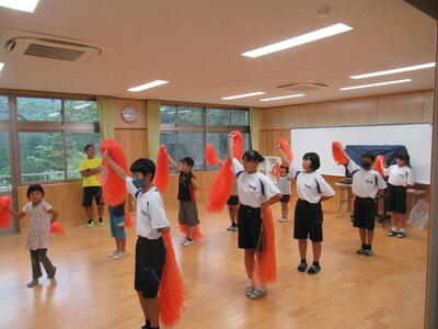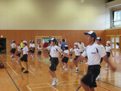 また、応援(団パフォーマンス)の練習では、中学生が小学校に来てくれて、応援の手ほどきをしてくれます。のりのりのダンスで子どもたちも生き生きと練習しています。小中合同のよさが、あちこちに見られる練習風景です。