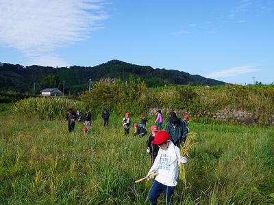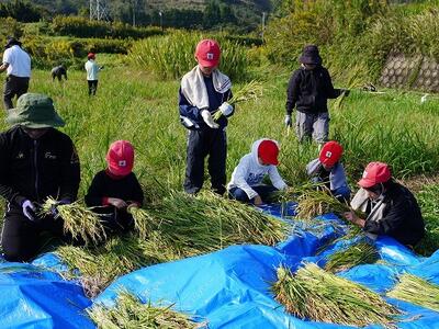 10月27日、学校で育ててきた稲の稲刈りを行いました。