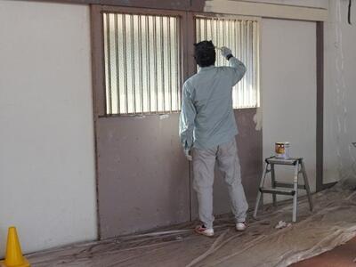 営繕担当様には、長年の使用で錆びついていた体育館の扉のペンキの塗り直しをお願いし、大変美しく仕上げていただいているところです。