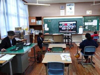 NN学習(西岳・夏尾地区交流学習)で、3年生、4年生、6年生でオンライン学習を行いました。