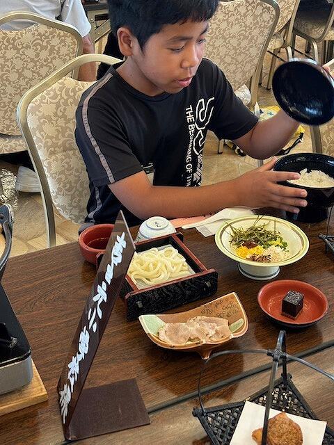 お買い物の後は、修学旅行最後の食事です。鹿児島の郷土料理である鶏飯の昼食です。昼食が終わったら、最後の見学地である平川動物園へ移動します。