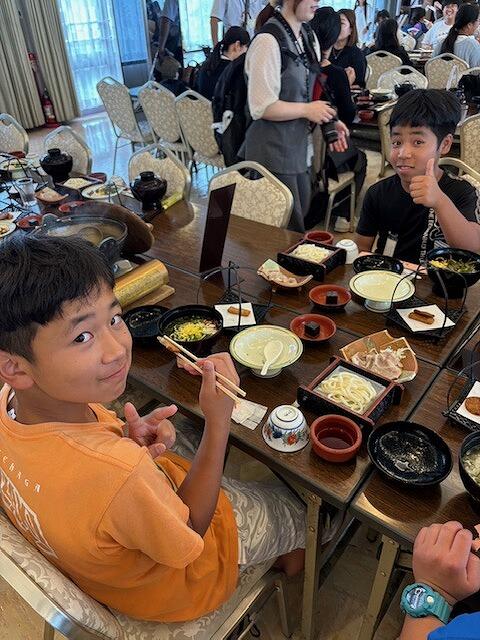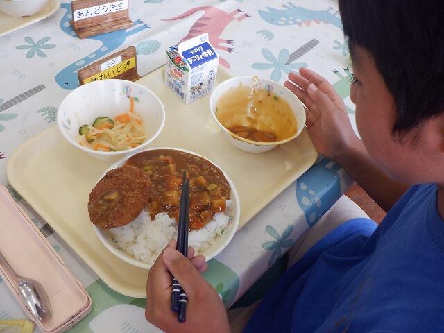 全員の顔が見える食事は、雰囲気も明るくなりますね。The school lunch we all eat together is delicious.