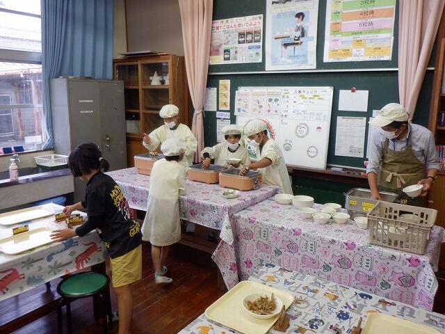 給食の準備と配膳は。PTAにお手伝いをいただきました。また、準備の時間を使って、地域の方に対して鈴木教頭先生が、これまでに吉之元小で発信してきたユーチューブやインスタグラムの動画を紹介しました。