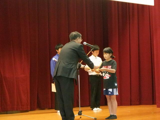 はじめに令和6年度の西岳・夏尾地区ふれあい標語コンクールの表彰がありました。本校からは、4年の村山稲穂さんが優秀賞の表彰を受けました。稲穂さんの標語は、『「行ってきます!」朝の大事なあいさつだ』です。