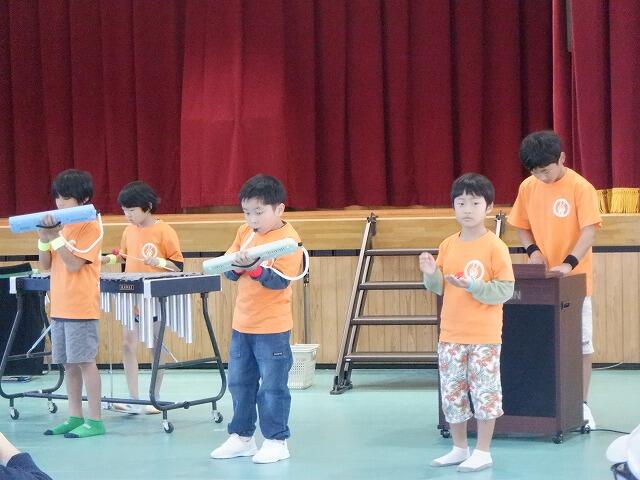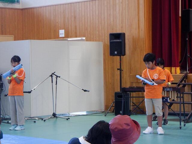 吉之元フェスタ前半部のトリは、全校児童による合奏です。「茶色の小瓶」をリコーダー、鍵盤ハーモニカ、木琴、鉄琴、バスキーボード、カスタネットで演奏しました。それぞれ練習してきた楽器をみんな上手に演奏することができました。 その3へ続く・・・