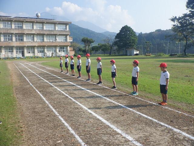 今年度から従来の赤白2団対抗形式の運動会ではなく、児童全員が運動に親しみ自分の記録に挑戦し、地域の方や保護者とふれあえる地域参加型の大会に変更しました。