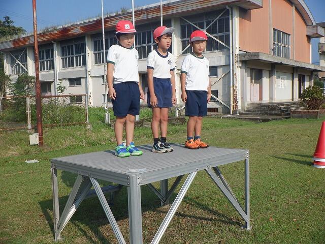 次は、新入児による徒走です。来年度は、1名の児童が入学する予定です。スポーツフェスタを盛り上げるために中学生も走ってくれました。