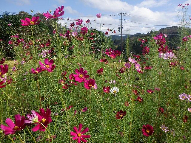 茎の高さも2mぐらいあり、一面に咲きほこっています。コスモスって、1年で2回も開花するんですね。初めて見ました。吉之元の朝も涼しくなり、やっと秋がやってきたという感じです。 Autumn has come.