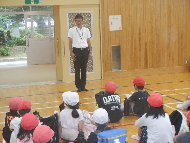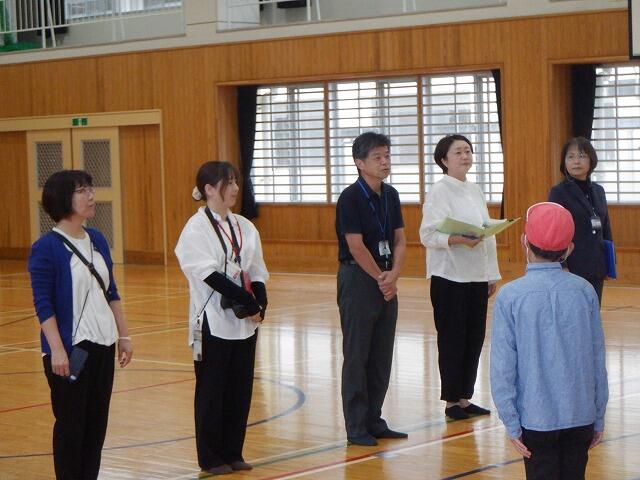 西岳小学校の体育館で出発式が行われ、3校の代表校長として、夏尾小学校の川越校長が挨拶をされました。本校からは、安藤教諭が引率として参加します。
