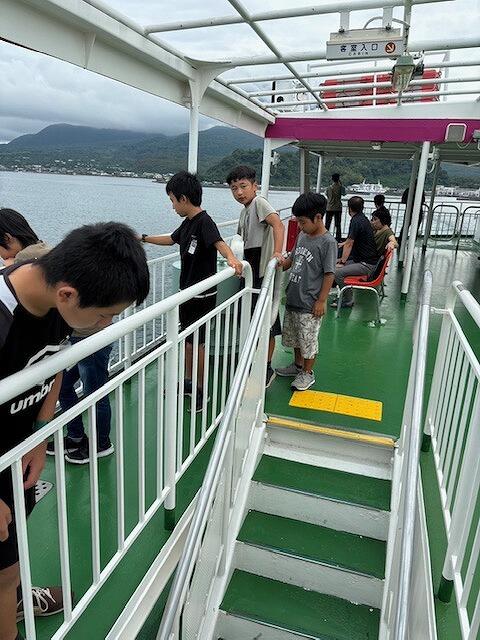 桜島フェリーで、鹿児島市内にわたり、修学旅行最初の食事をとりました。