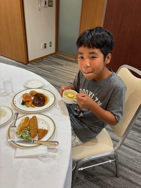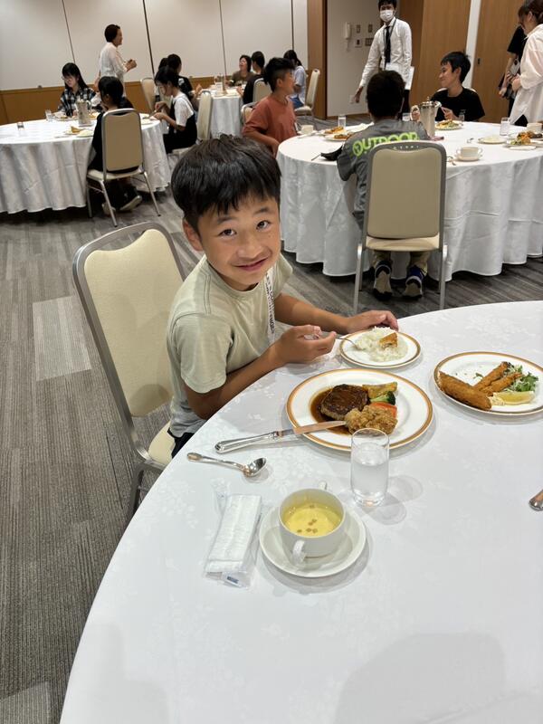 子どもたちは、夕食に大満足だったようです。1日の疲れも忘れる楽しい食事でした。